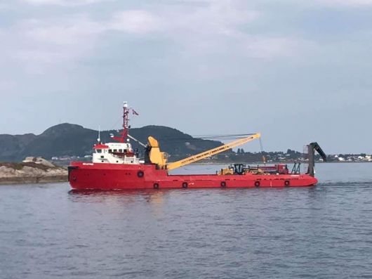 Høvel og lastebil blir fraktet mellom øyene